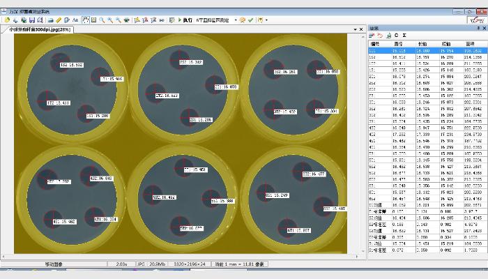 (4)★自動分割長形粘連或圓形粘連目標,自動分類計數與測量(獲得面積、周長、直徑、主軸、副軸等形態參數)。
