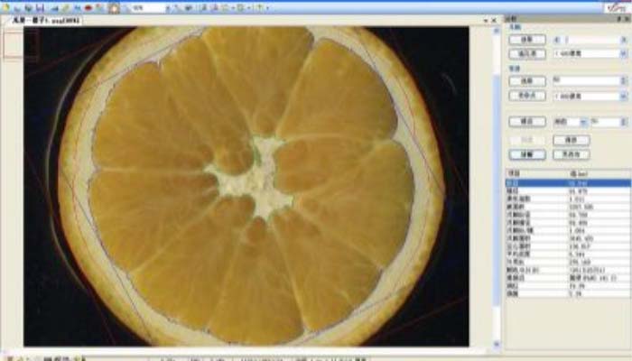 (4)可同時測量30只柑橘類水果的:縱徑、橫徑、果形指數、總面積、皮厚、肉色分檔分析、外周長。