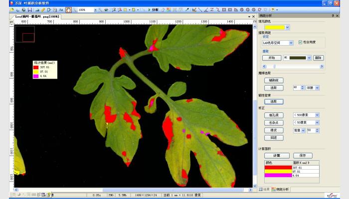 用于植物根系分析、葉面積分析、病斑面積分析、蟲損葉面積分析、葉片葉色分析、作物冠層分析等。